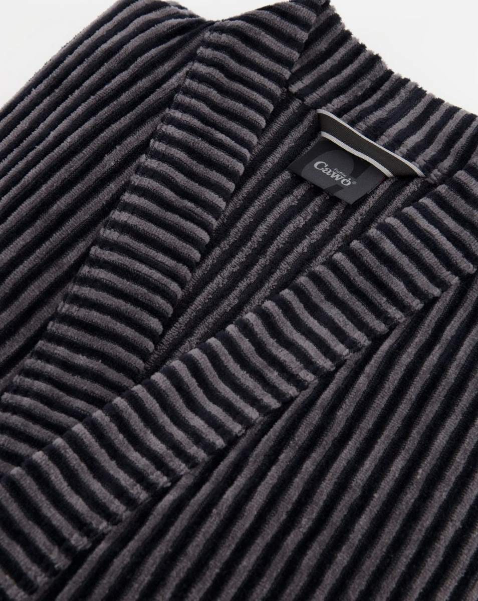 Привлекательный полосатый вид. Велюр высокого качества. В интернет-магазине «Силк Дримс» вы найдете богатый ассортимент элитных мужских халатов от ведущих европейских производителей. Данная модель немецкого бренда CAWO выполнена в темно-сером цвете. Классический крой кимоно, средняя длина, карманы – именно так должен выглядеть традиционный мужской халат, соединяющий в себе удобство и стиль. Материал изготовления – 100% хлопок. Этот высококачественный и легкий в уходе мужской халат в стиле кимоно легко стирается при температуре 60°C в машине и желательно его высушить в сушильной машине. Отдохните с удовольствием дома в халате от производителя бренда CAWO. Халат CAWO будет прекрасным подарком мужу, брату, отцу на день рождения или другой праздник.