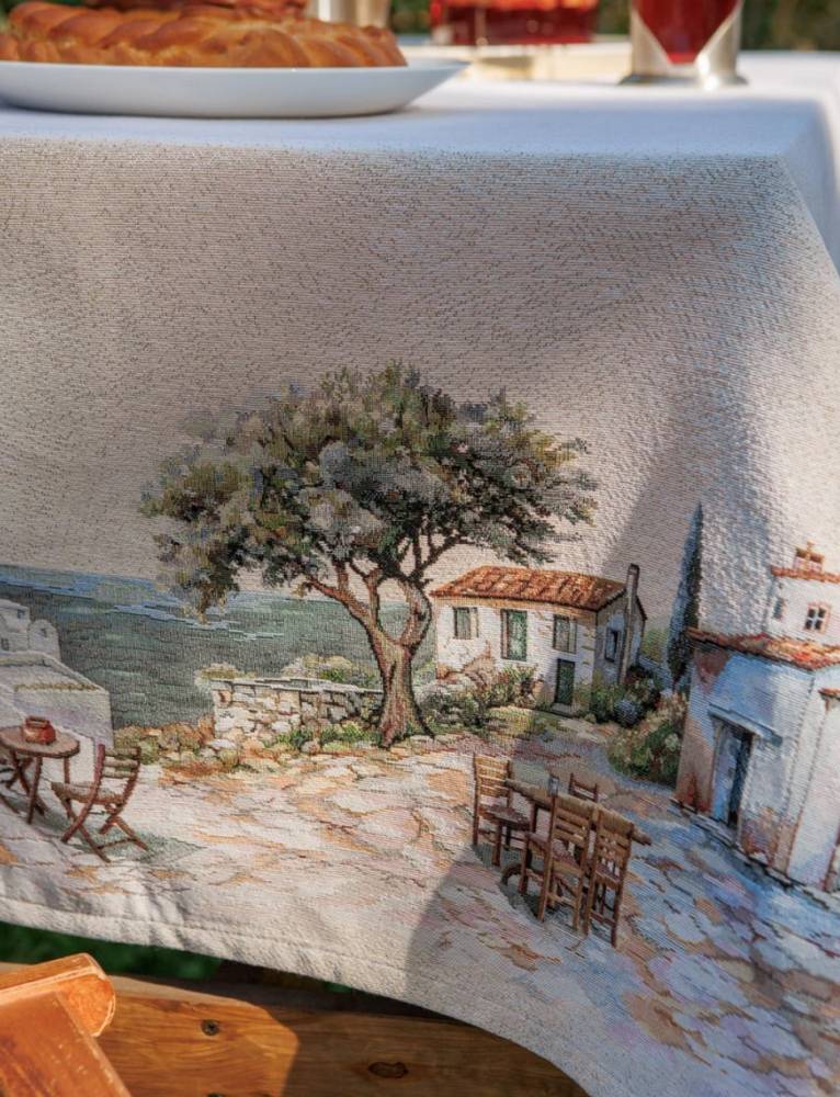 Премиальная Скатерть Le Gobelin ГРЕЦИЯ ОЛИВКИ 160х250 артикул 81762 купить с доставкой в Москве, цены - интернет-магазин по продаже скатертей №1 в России